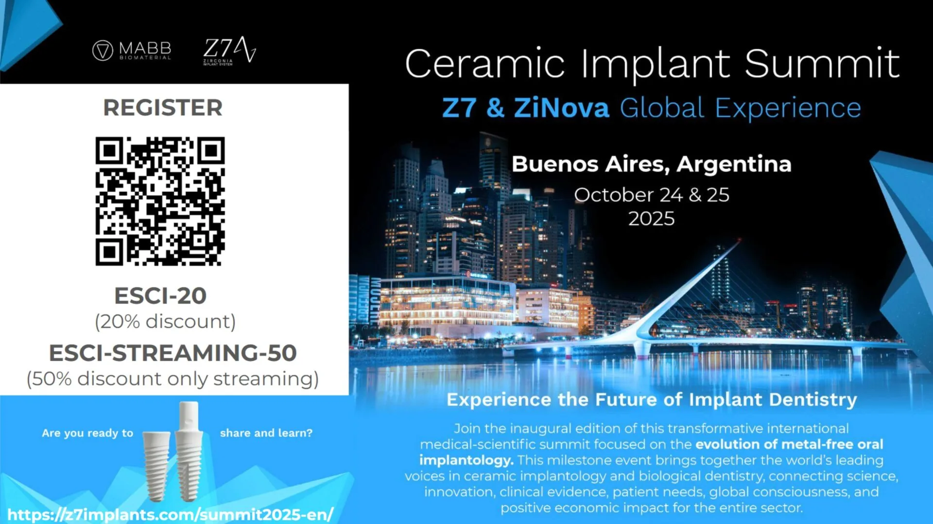 Join the inaugural edition of this transformative international medical-scientific summit, focused on the evolution of metal-free oral implantology. This historic event brings together the world’s leading voices in ceramic implantology and biological dentistry, connecting science, innovation, clinical evidence, patient needs, global awareness, and positive economic impact for the entire sector.Live Streaming tickets availabe!Partial Scholarship (50% off – unlimited use)